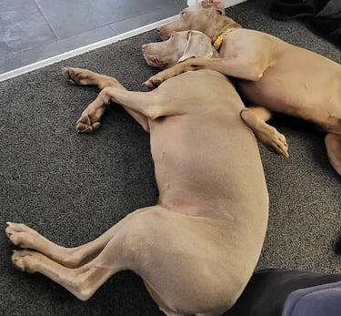 Richard and Paula are fabulous! Whether it's day care, overnighting or just a drop in they really care about our two Weimeraners. They are big dogs but nothing is too much trouble for them even sharing the sun lounger in their garden 😀 You know the dogs are happy to go to them because they get excited before every visit.
