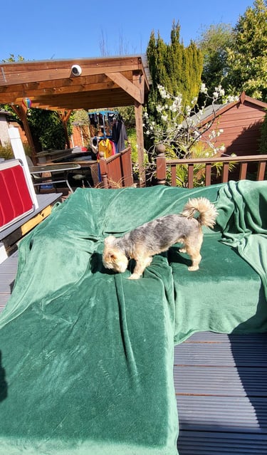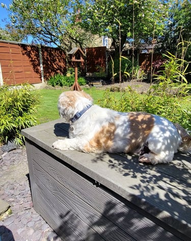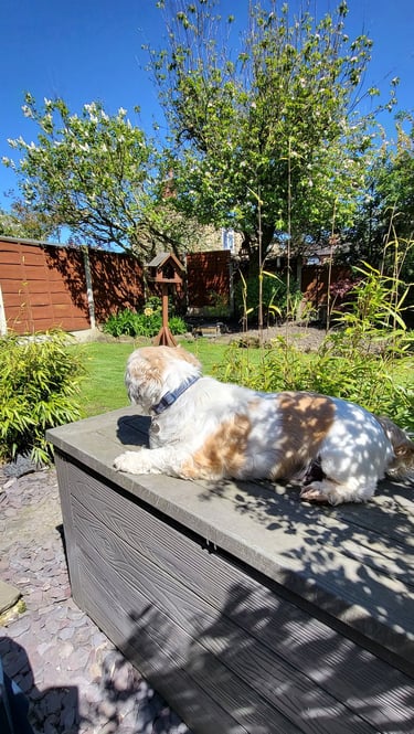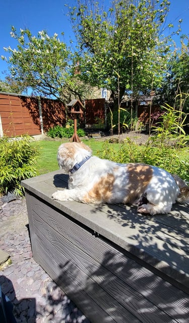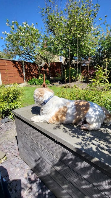 Dinner, then a short digestion break (45 -60mins) before a walk followed by more cuddles and chill time. Access to the garden is always available ( 8am - 11pm ) throughout spring, summer, autumn, and winter (depending on the weather).... your furry friend will always find a favourite spot.