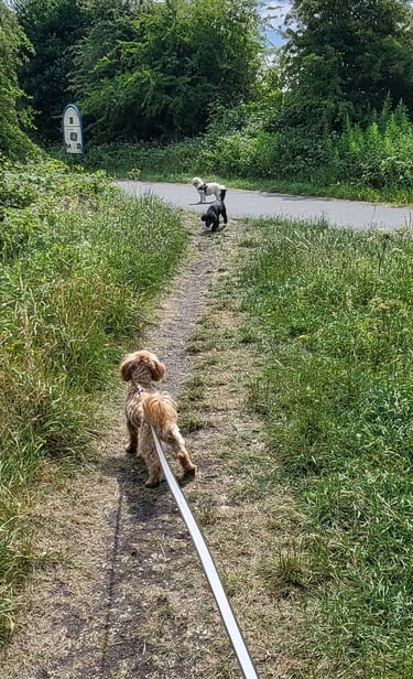 Located just a 2-minute walk from the Rothwell Pastures and Greenway, our dogs enjoy diverse and stimulating walks. We prioritise varying our routes to introduce new scents and environments, nurturing their mental well-being and a vibrant, healthy lifestyle for our guests.