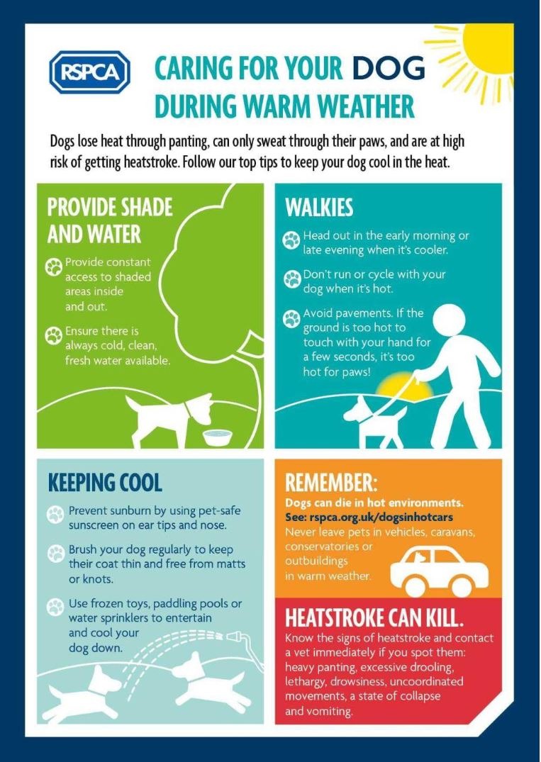Ensure pets always have access to shade and fresh drinking water to help keep them cool.